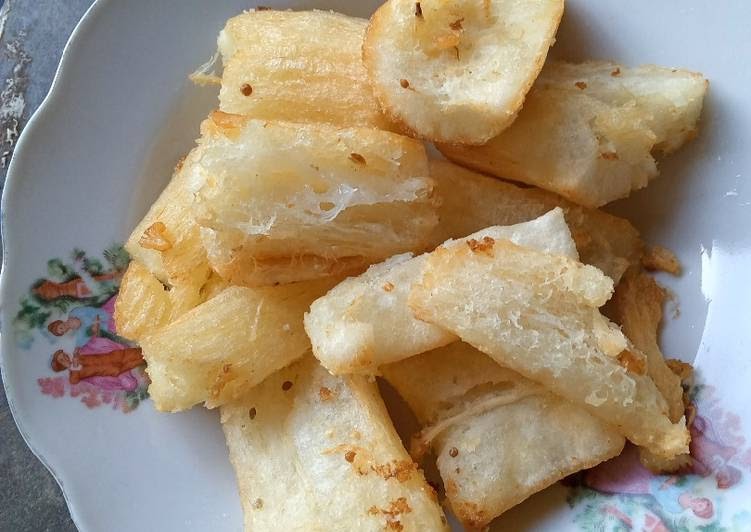 Goreng hingga berwarna kuning kecoklatan dan garing.